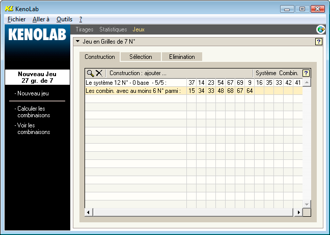 - Tous les filtres possibles sur les combinaisons (sélection, élimination, construction, filtres sur les poids des grilles, sur les séries de numéros) permettant des stratégies inédites